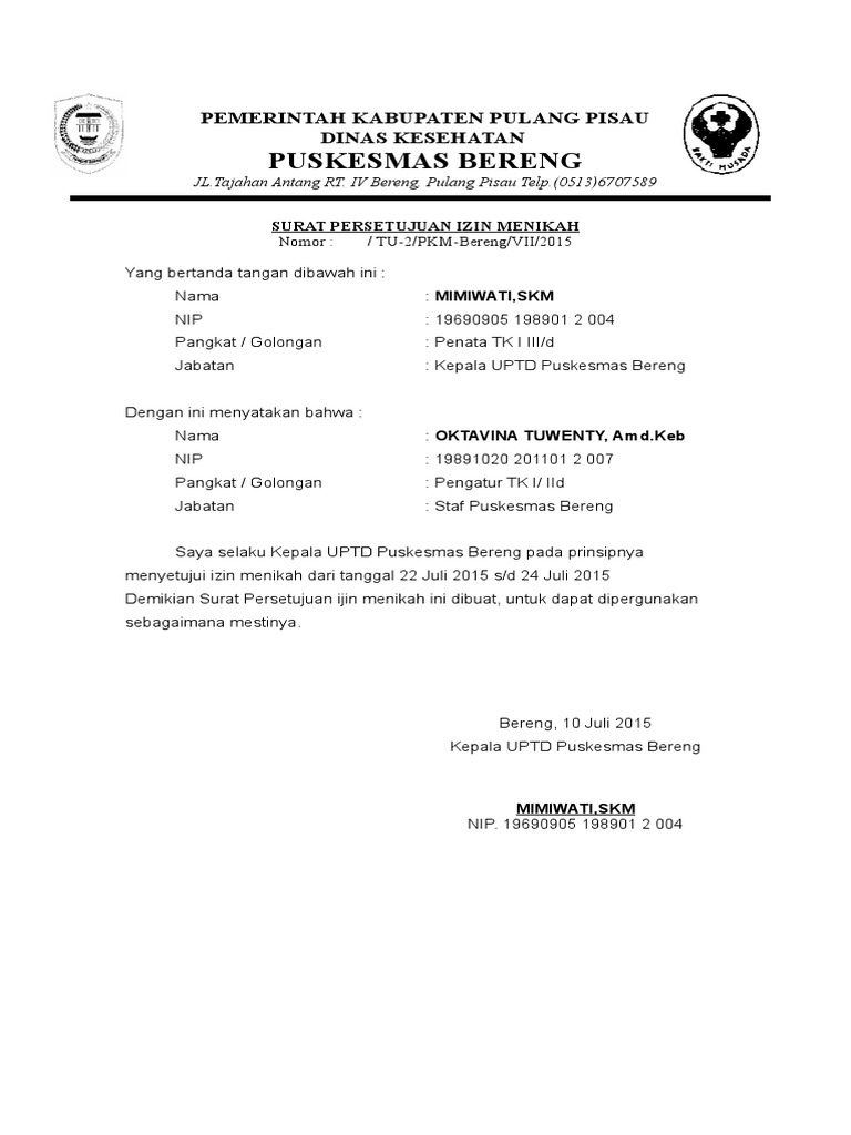 Surat izin merupakan surat yang berisi keterangan seseorang untuk meminta izin kepada instansi, salah satunya sekolah. Baik itu di kantor maupun di kua. Contoh surat izin cuti nikah, melahirkan, dan kuliah terbaru. Contoh surat keterangan belum menikah untuk ppg. Surat izin orang tuaini intinya adalah mengenai pernyataan orang tua terkait kegiatan yang akan diikuti oleh putra putrinya. Dalam surat disebutkan secara lengkap data diri pemohon serta waktu cuti. Contoh surat cuti menikah untuk guru wl1pk2e69vlj. Menulis surat izin dari orang tua tidaklah begitu susah dan mungkin sudah merupakan hal yang biasa bagi untuk itu, anda bisa menulis surat izin orang tua untuk menikah seperti contoh di bawah ini. Demikianlah surat izin cuti ini saya ajukan, atas perhatian dan. Pengajuan izin menikah dan cuti yth. Tenggarong, nopember 2017 kepada perihal : Cara membuat surat izin cuti menikah yang benar. Contoh surat izin tidak masuk kerja karena menikah.